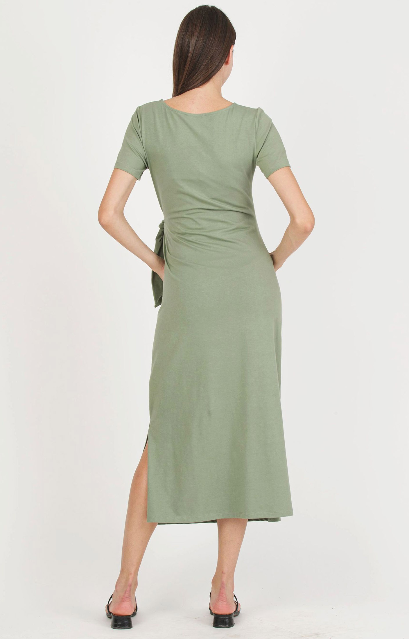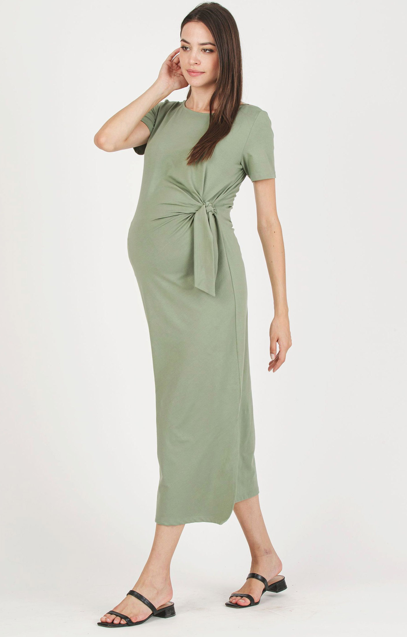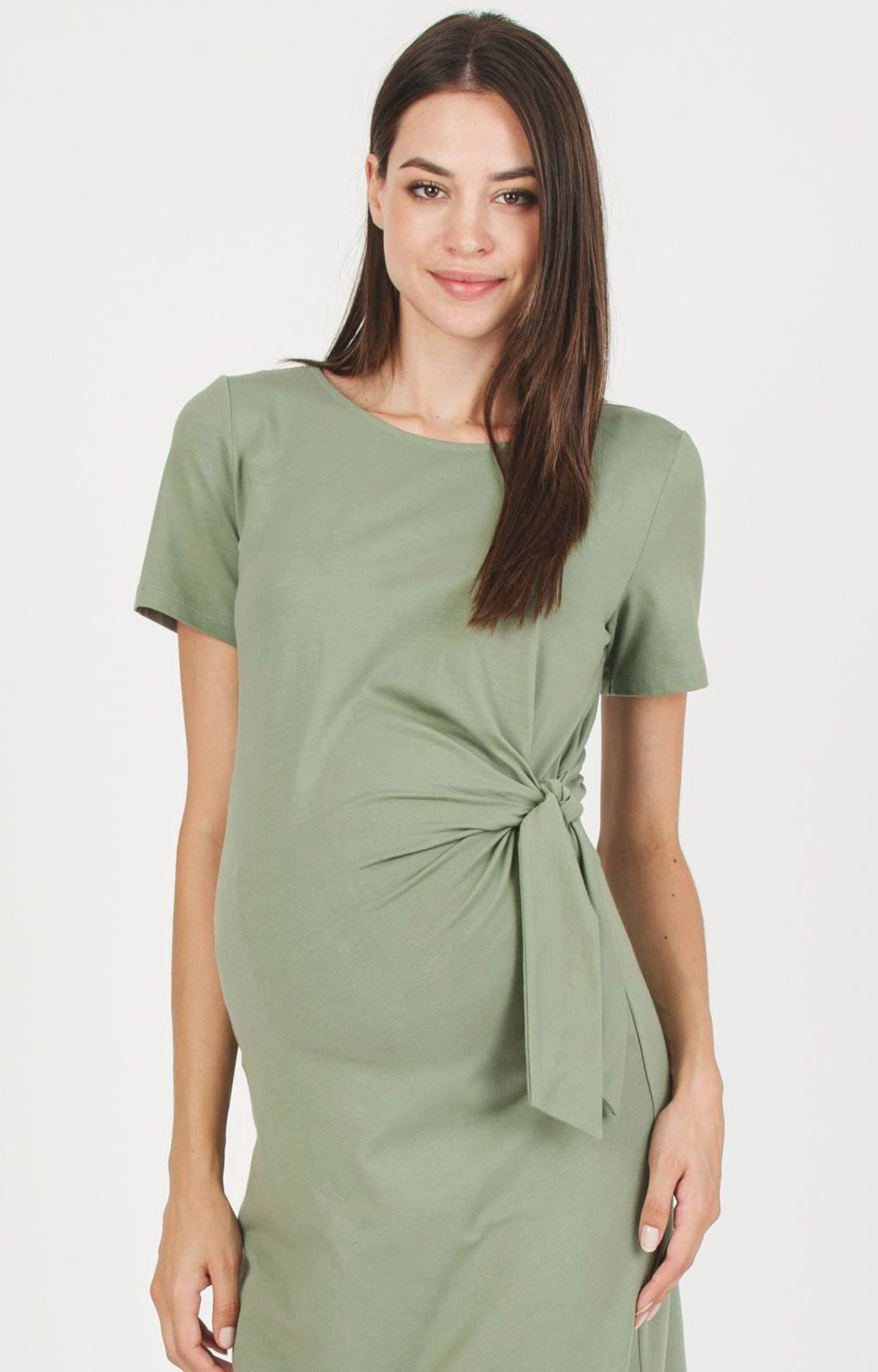 Maternity dress in super-stretch cotton jersey that, thanks to the side knot, gently shapes and enhances the bump. The boat neckline and short sleeves give it a chic feel while keeping it casual. Perfect in spring with a denim jacket, and ideal in summer with colourful sandals for easy, everyday looks.