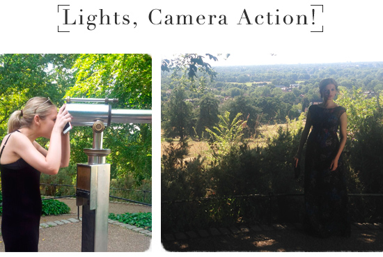 We shot the Jasmine Gown in Midnight Flower in front of a most spectacular view over the English countryside, with members of the team taking the time to peer through the telescope at a view stretching all of the way to St Pauls Cathedral in central London.
