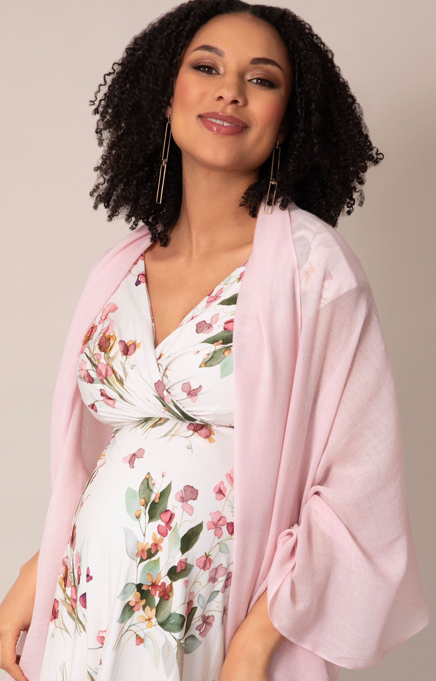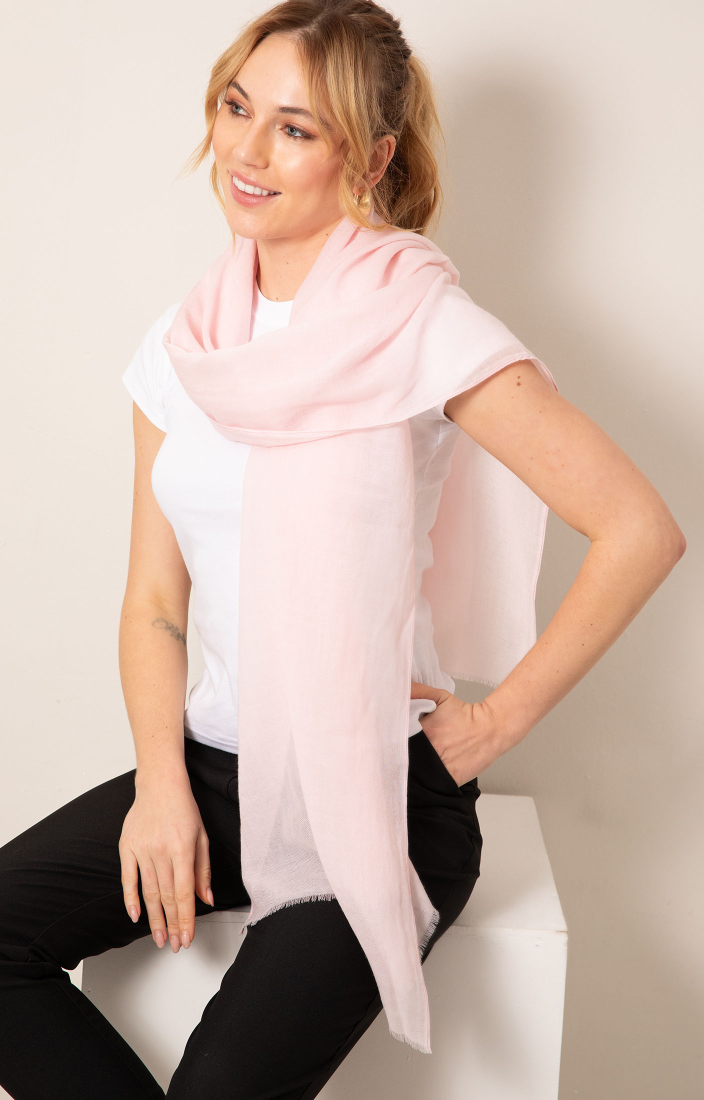 Wrap yourself in the serene elegance of Soft Pink. The Aurielle Scarf is crafted from a luxurious silk and wool blend, offering soft warmth and graceful drape in a single, sophisticated tone.