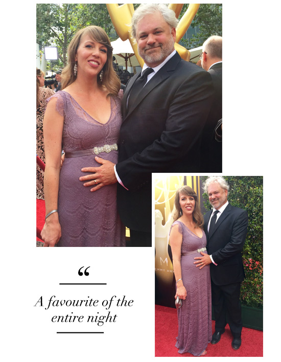 Very excited to see one of our lovely Tiffany Rose customers attending the Emmy Awards and wearing our Kristin Maternity Gown with matching Aurelia Vintage Sash.