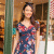 Mit roten, weißen, rosa und gelben Blüten auf einer Basis aus tiefem Marineblau begleitet Sie dieses Kleid vom Sommer bis in den Winter.