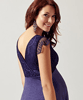 Wir haben unser Umstandskleid Nina mit dem perfekten Cross-over-Ausschnitt entworfen, um Ihre neue Form traumhaft zur Geltung zu bringen. Sie werden das enganliegende Oberteil mit zarter Indigo-Spitze und die wundervollen Spitzendetails an den Ärmeln lieben.