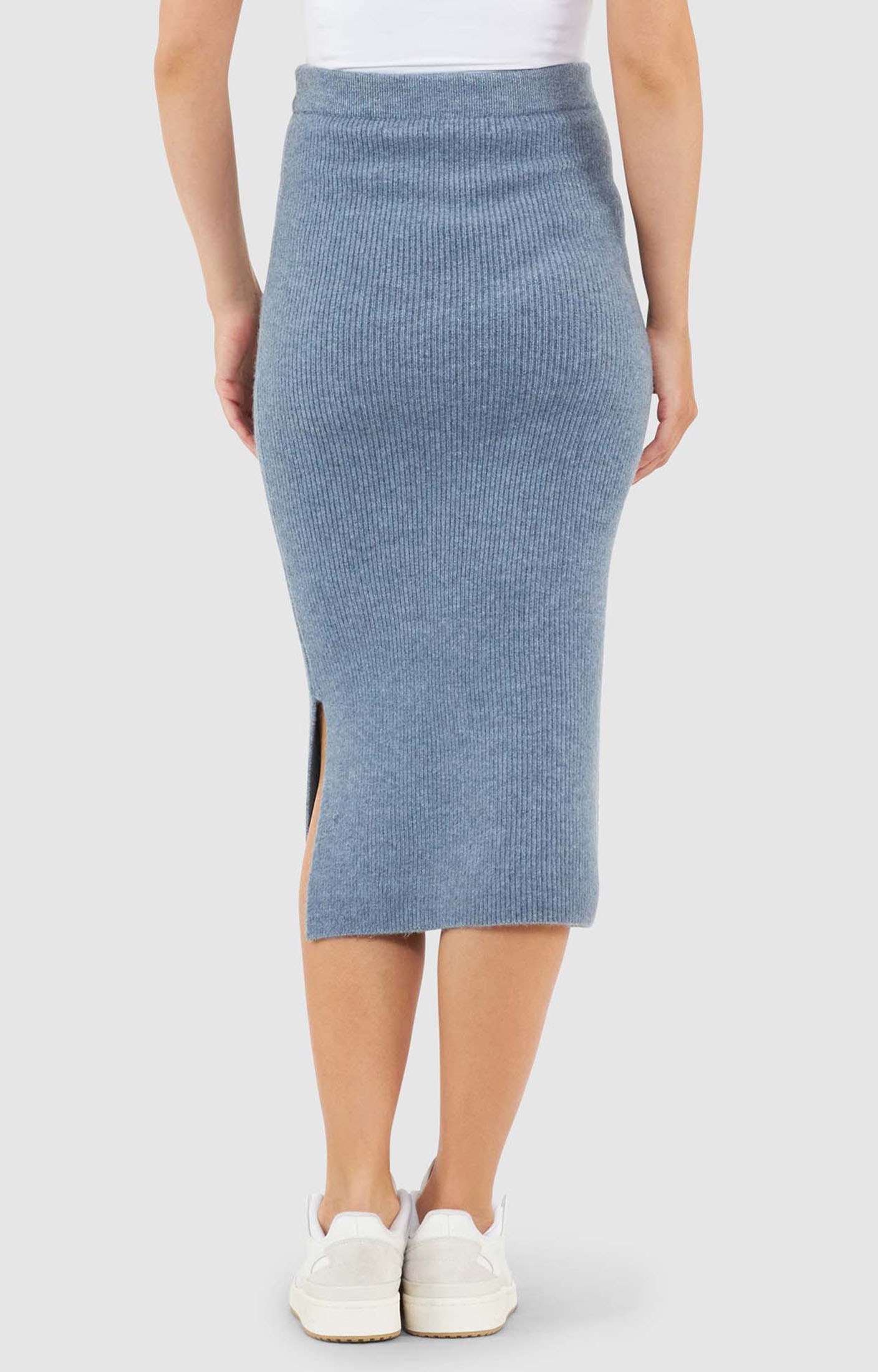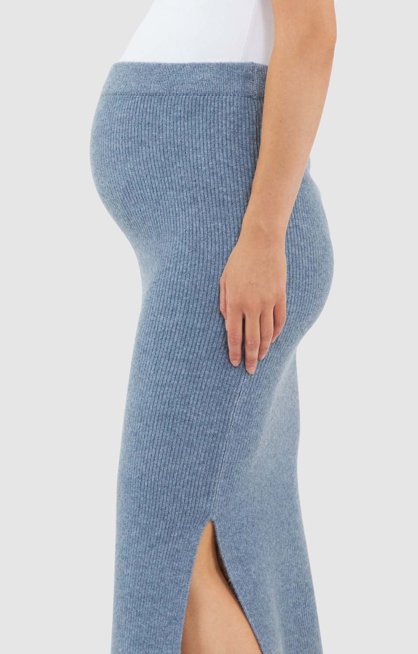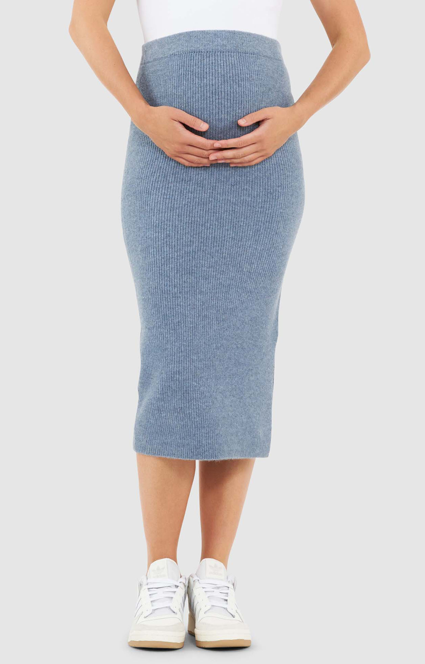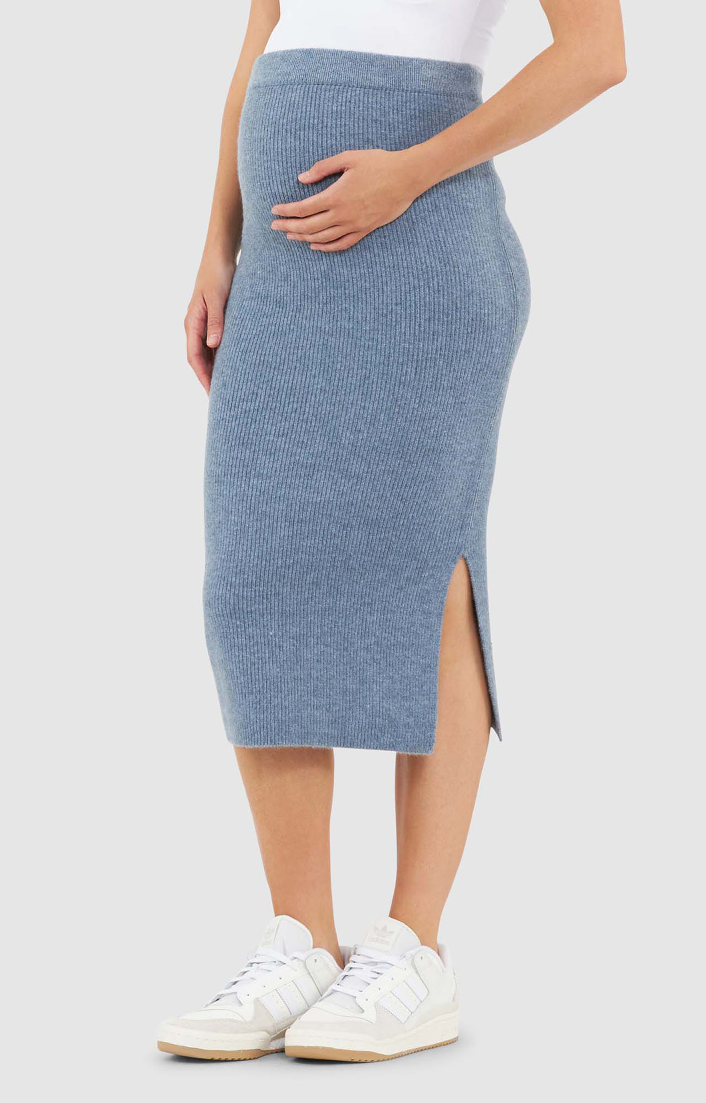 The Dani Knit Maternity Skirt is designed to sit high over your bump and fit perfectly through all stages of pregnancy. Have some fun styling this soft ribbed knit skirt with a cropped top or tied up tee, or wear as a set with our Sandy Detachable Nursing Knit.