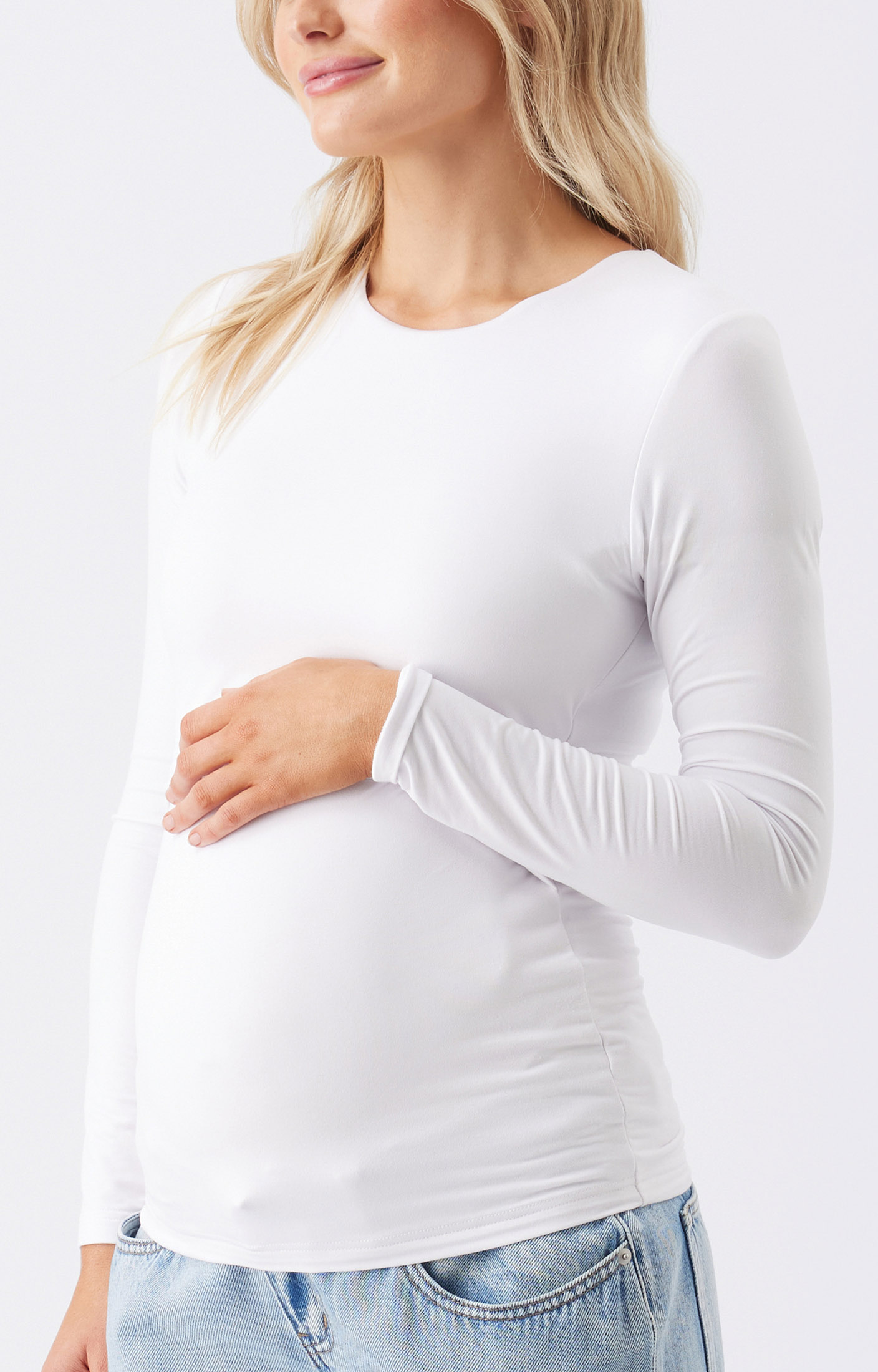 The Luxe Knit Nursing Top is a wardrobe staple for the transition into the cooler seasons. Cut from our new uber luxe knit fabric, this lightweight top allows for breathability and comfort from AM to PM. This top features a crew neck, full length sleeves, and functional, lift-up nursing access. Style yours with jeans, or wear it as a base layer with our Denim Overalls.