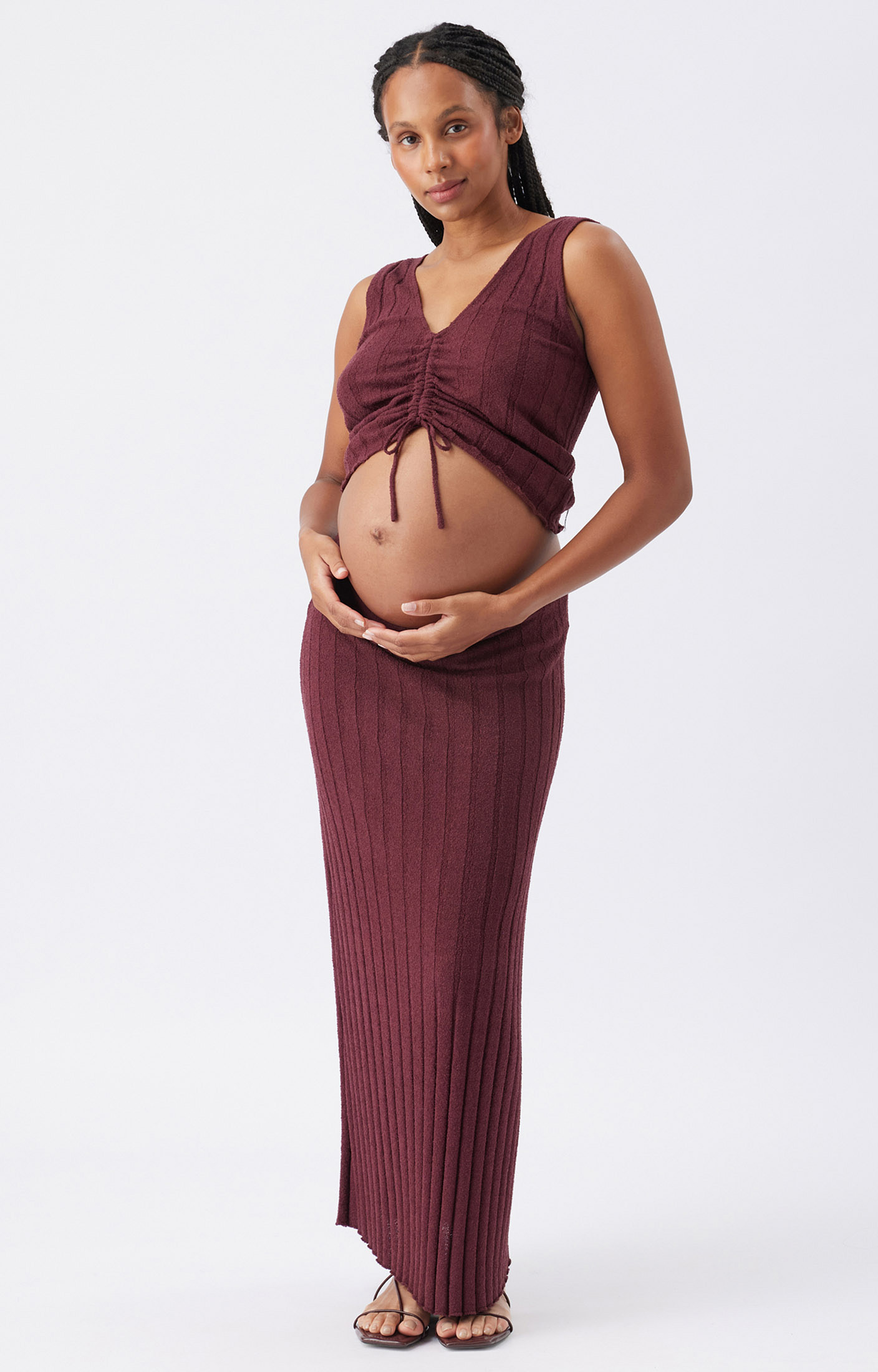 The Misha Rib Knit Tank features a flattering V-neckline that meets an adjustable centre tie over your bump for a custom-fit. With is textured knit fabric, it's giving us all the boho vibes for a relaxed Spring/Summer ahead - especially when teamed with its matching Charli Rib Knit Skirt to show or cover as much of your bump as you wish. Our high stretch quality allows for a figure hugging shape whilst still being breathable and lightweight.