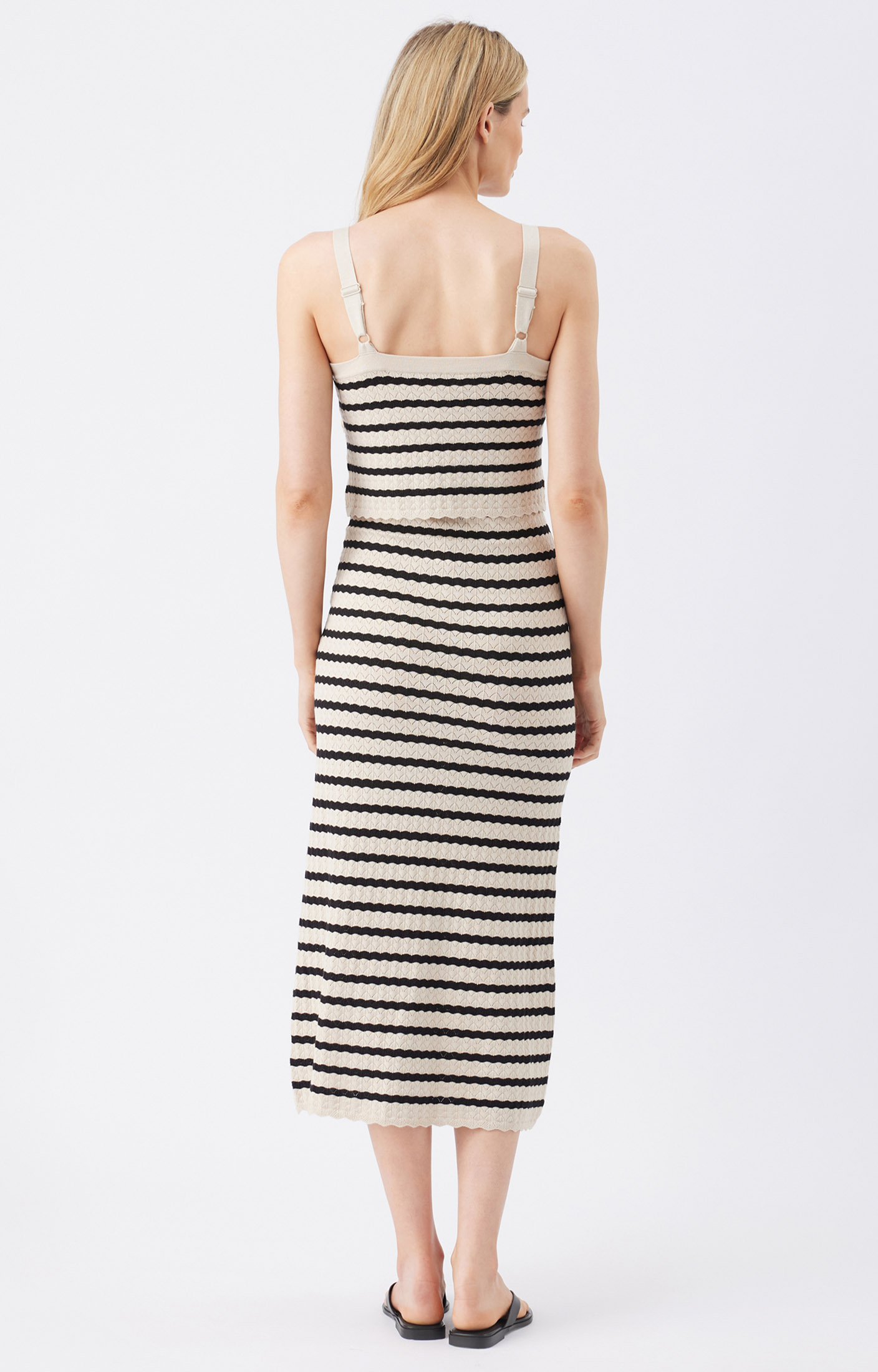 The Pointelle Knit Nursing Dress blends comfort with effortless style. Made from a soft, striped pointelle knit, it has a semi-fitted silhouette that feels as good as it looks. A straight neckline and adjustable straps add a refined touch, while the lift-up overlayer makes nursing easy and discreet. Wear it on its own for a breezy, warm-weather look — this is one of those pieces that’s simple, stylish, and thoughtfully designed for motherhood.