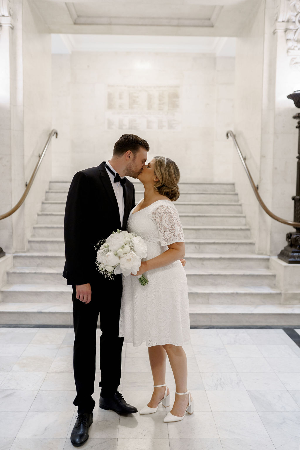 We chose the Old Marylebone Town Hall as our wedding venue as we wanted to get married before our baby arrived but didn't want to compromise on having a beautiful venue. As we weren't able to have a big reception we looked at registry offices and OMTH topped the list.