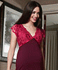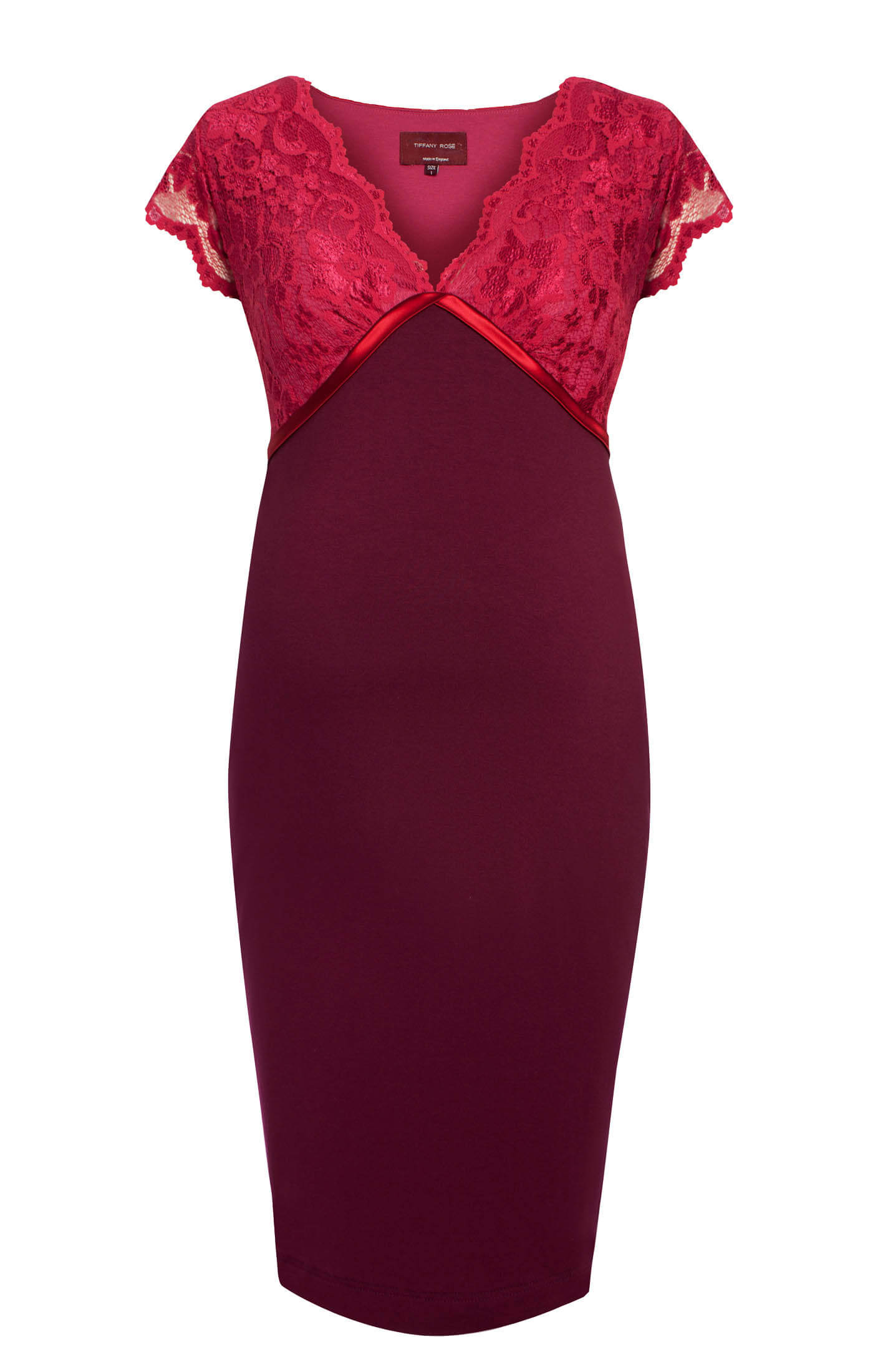Beautiful stretch floral lace overlays a soft jersey bodice in a bright and dramatic shade of rose. Dainty sleeves are left unlined to take centre stage.