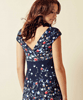 Cocktail chic ou réception habillée ? Nous avons votre tenue ! Avec ses fleurs roses et crème sur fond bleu marine, la robe Gemma est une parfaite harmonie de coloris classiques et bohèmes.