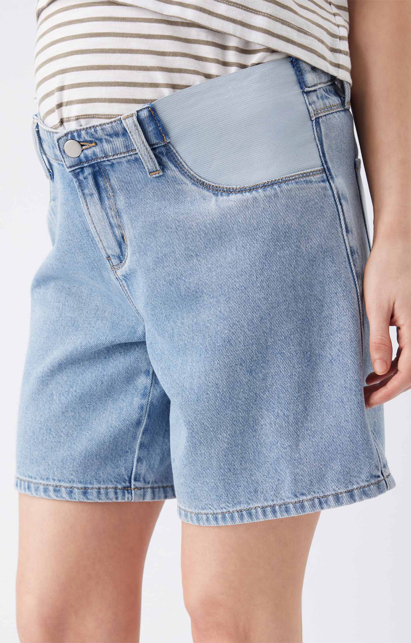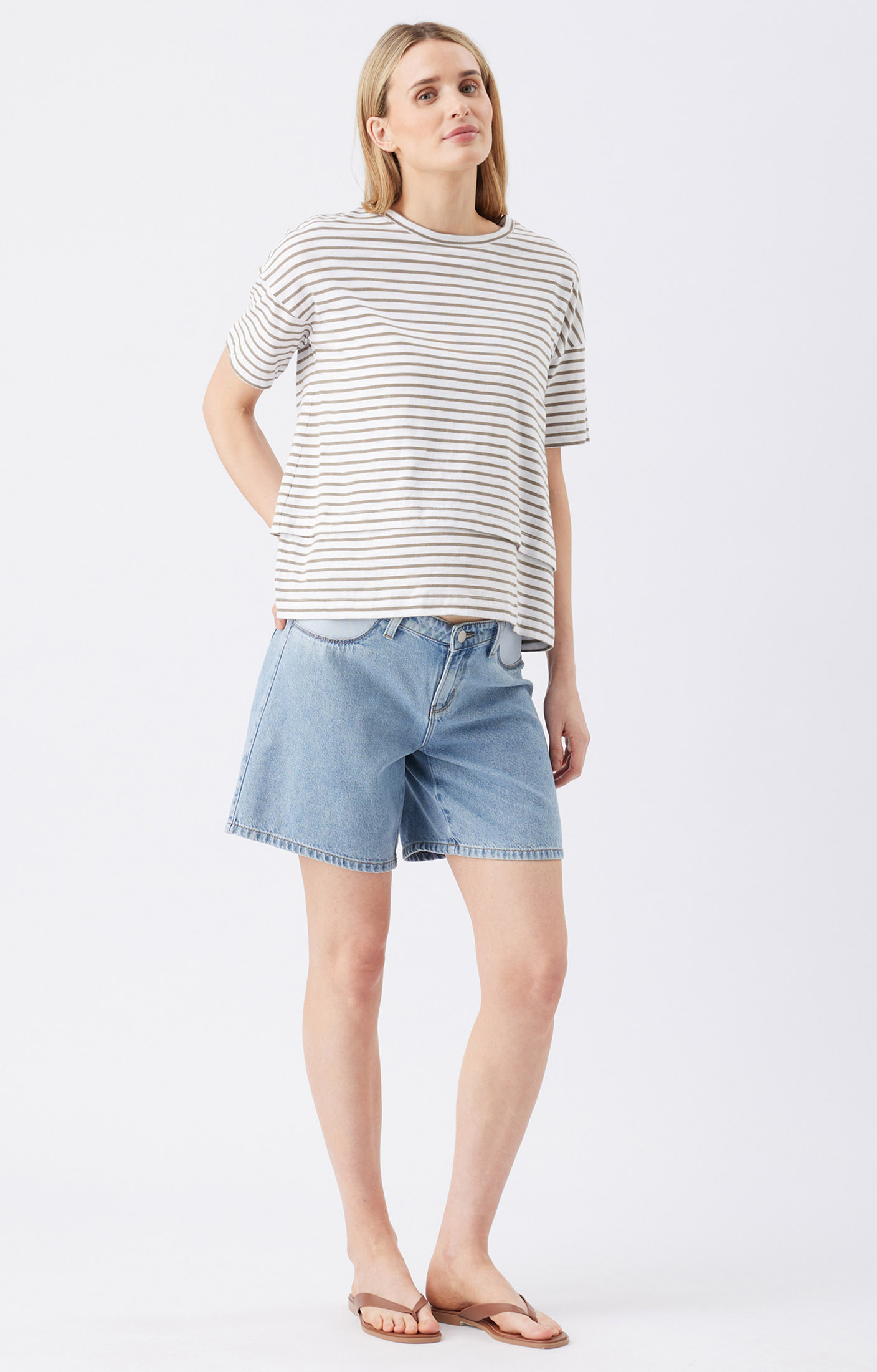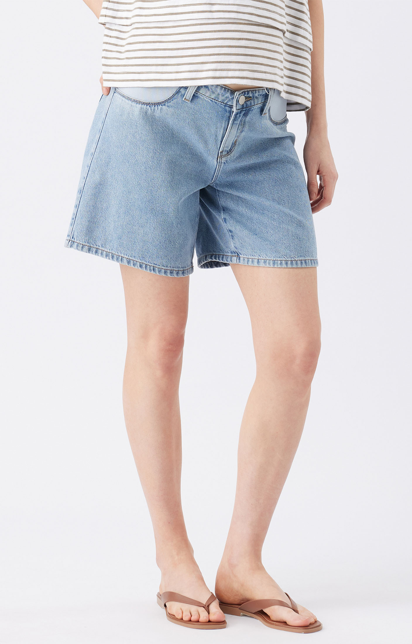 Effortlessly cool and endlessly comfortable, the Dion Denim Shorts are your go-to for laid-back summer style. Crafted from a durable blend of cotton and Lyocell, they capture the timeless appeal of non-stretch denim with a soft, breathable feel. The relaxed fit and straight leg cut create a structured yet effortless silhouette, while the elastic waistband insert sits comfortably under your growing bump or gently around your postpartum waist—making these shorts ideal for every stage of pregnancy and beyond. Designed to grow with you, these shorts will remain a staple well beyond baby’s arrival.