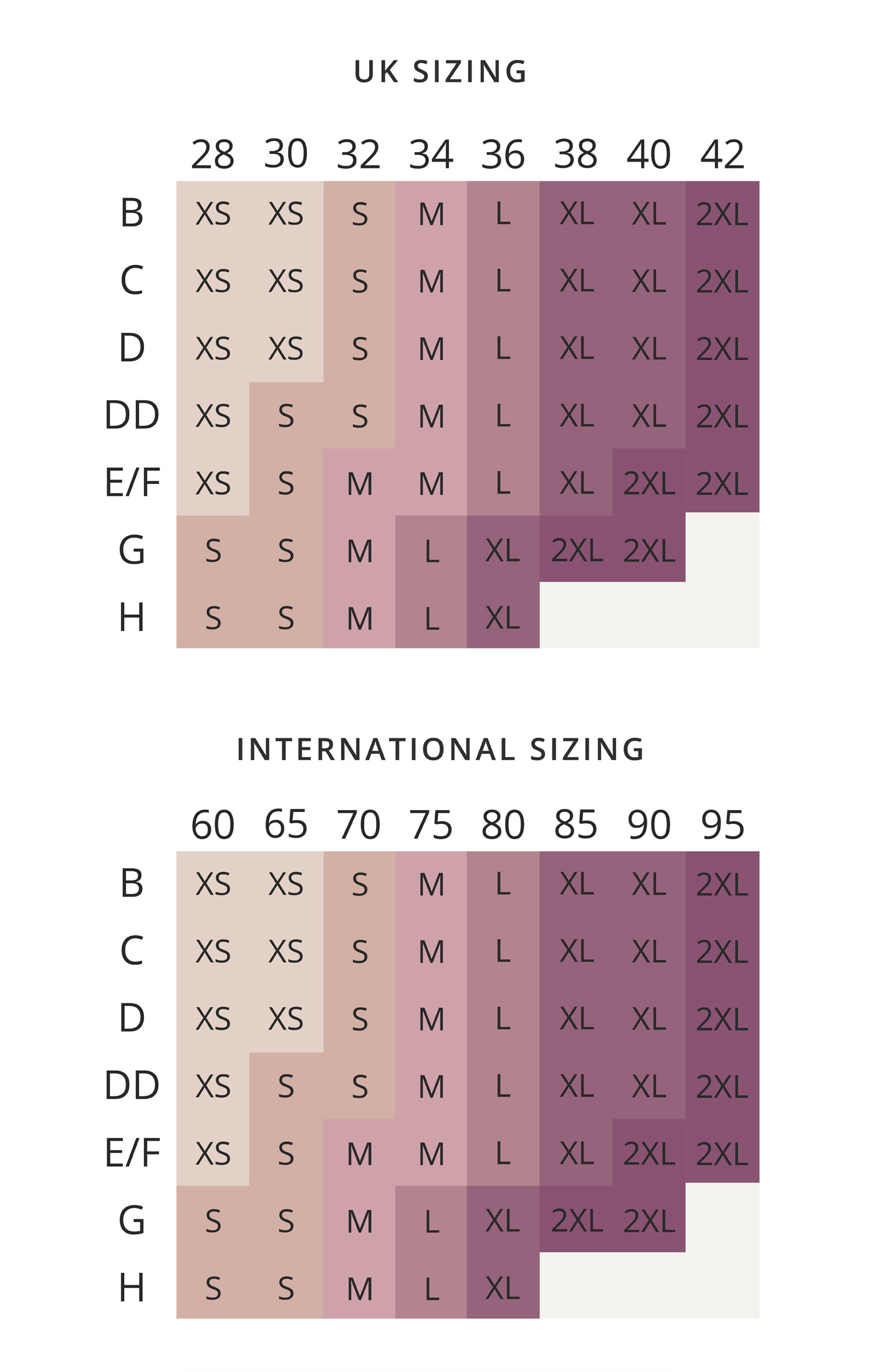 Either choose your pre-pregnancy size for the best fit – or refer to our sizing chart shown on the above image.