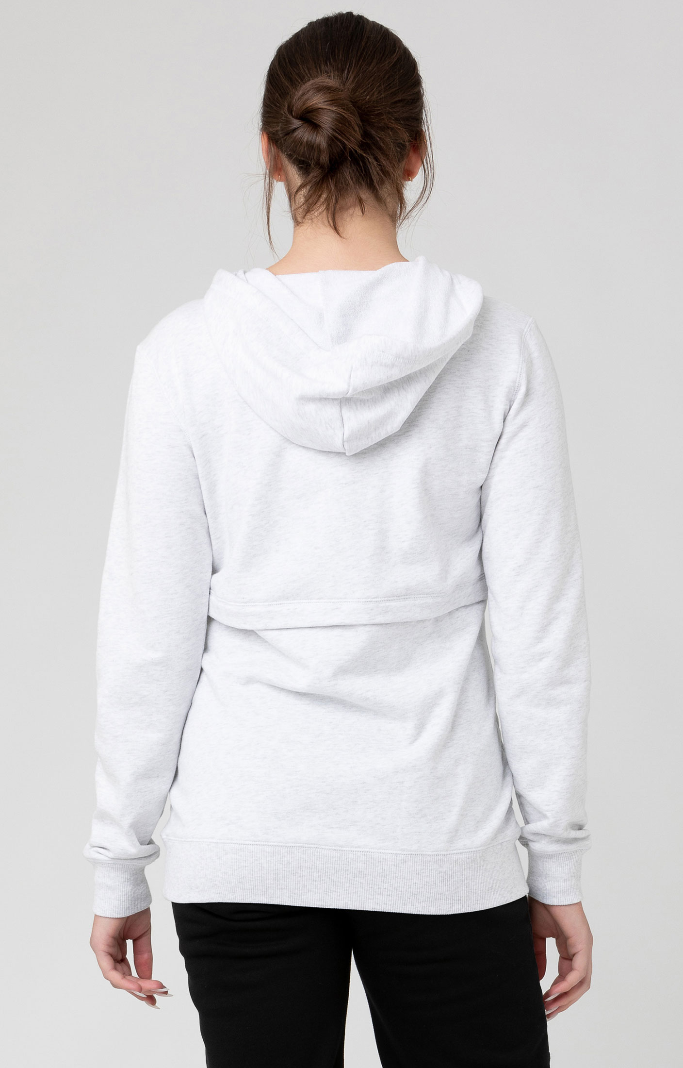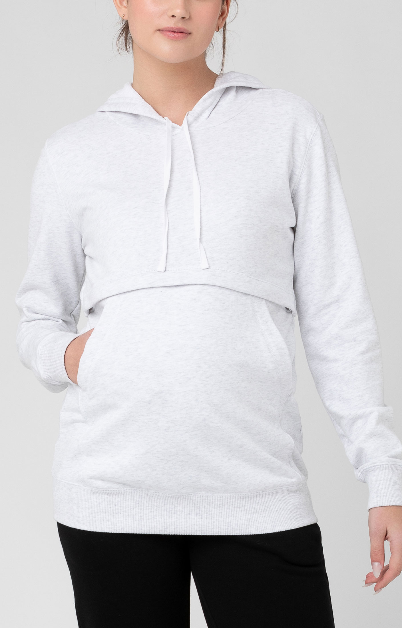 Stay cosy in our Kitty Nursing Hoodie. This stylish cool-weather sweater offers ultimate comfort and a fresh clean look for every day wear. Our maternity and nursing hoodie features a front pouch pocket, making it easy to carry those small essentials and a hidden horizontal zip for easy nursing access.