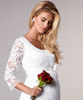 A smart maternity wedding dress, Katie sits elegantly on the knee with a classic scoop neckline and ¾ sleeves.