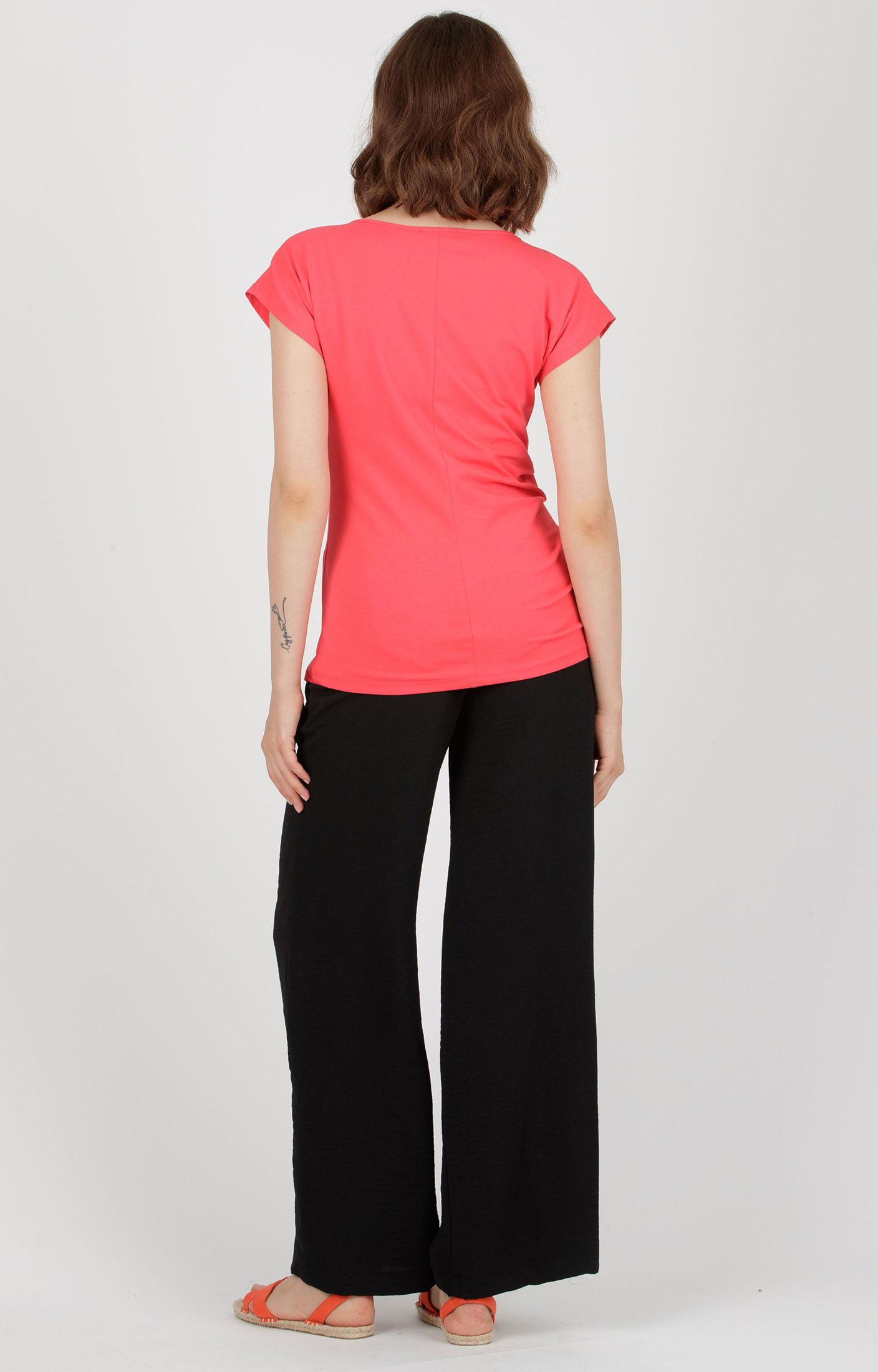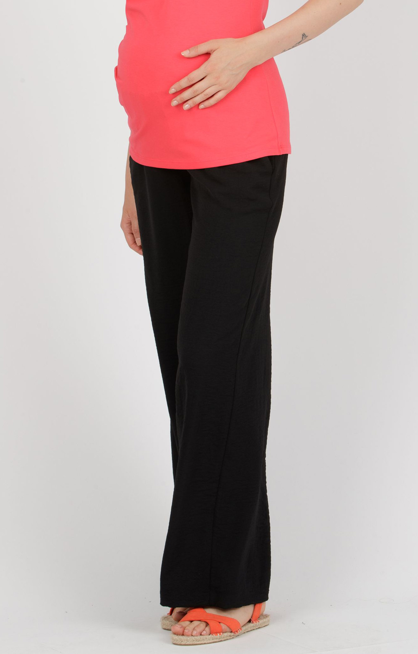 Maternity trousers in fluid crepe, perfect for both mid-season and the warmer months. The soft, relaxed leg is stylish and incredibly comfortable. The low-rise waistband can be worn during and after pregnancy and is adjustable at the back thanks to an elastic insert.