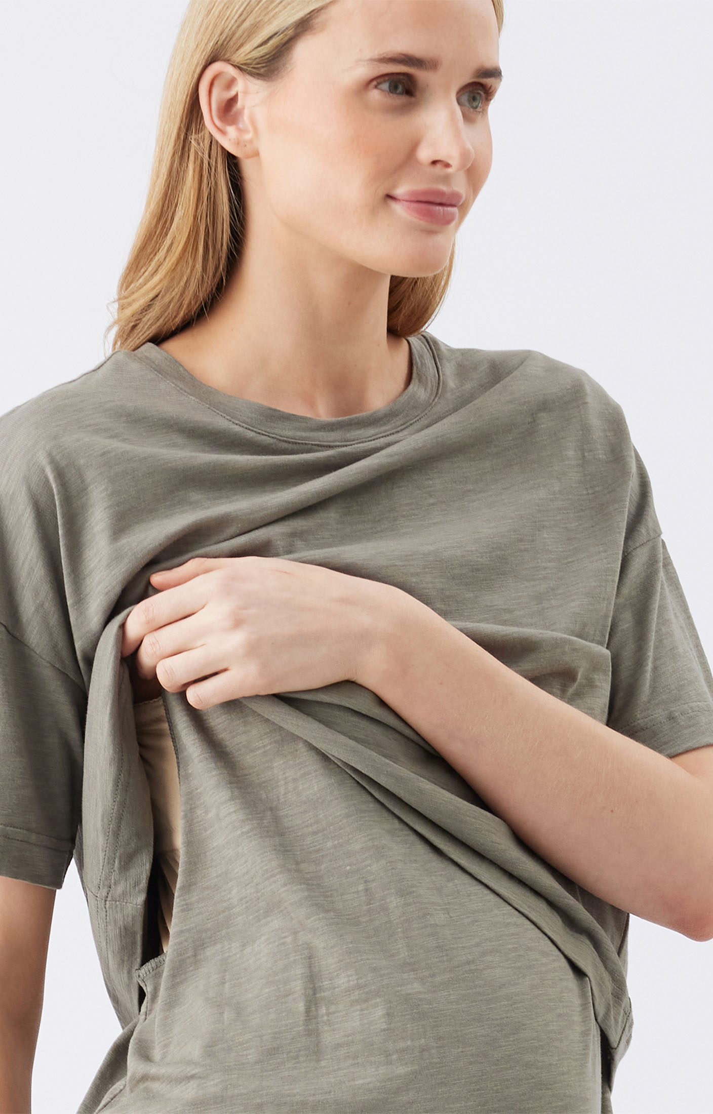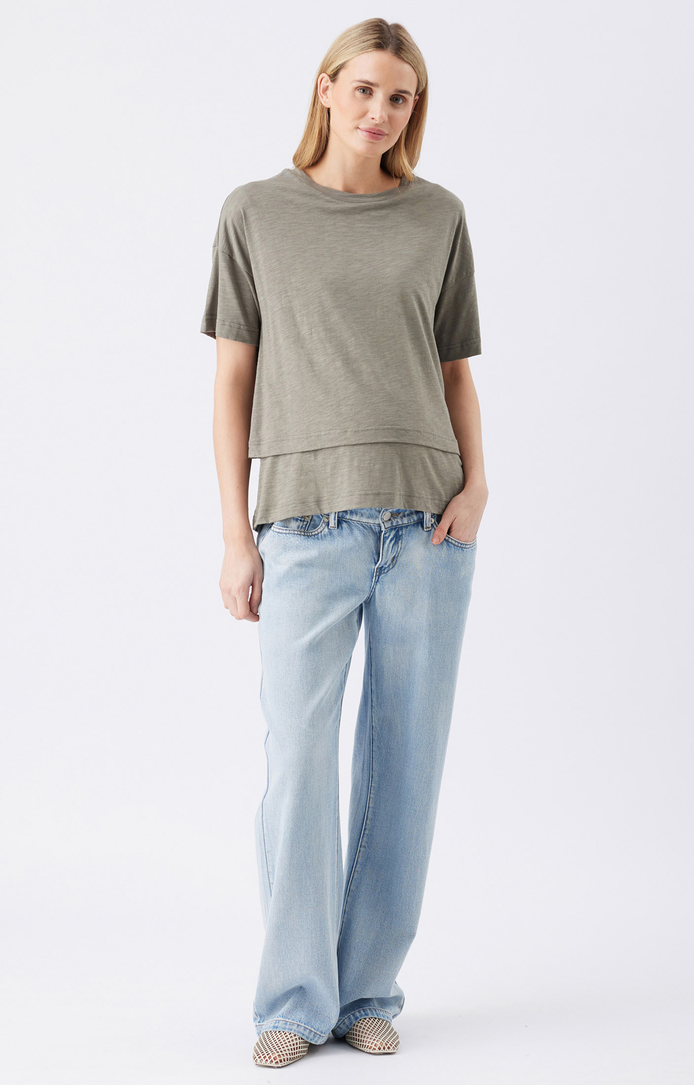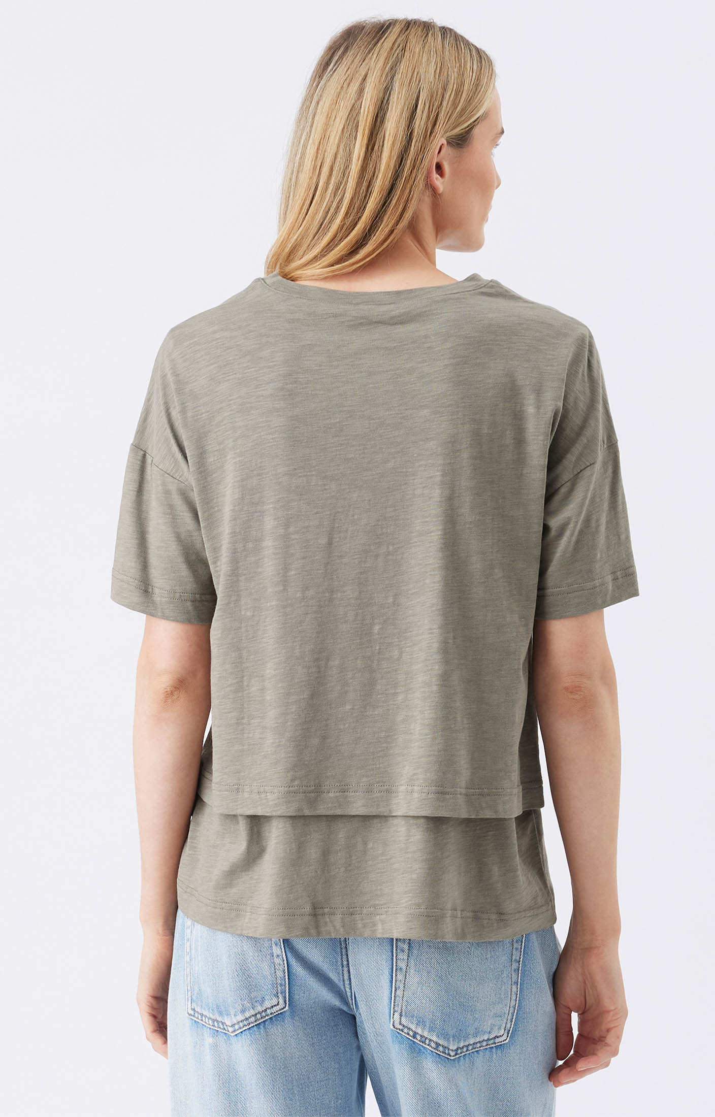 Part of our premium basics range, the Claud Nursing Tee is a true wardrobe staple. Crafted from a blend of cotton and modal for a stretchy, cozy feel on your skin, this top is a sleek and comfortable option for easy casual outfitting in any season. With a classic short sleeve design, crew neckline, and relaxed fit, Claud can also be worn as a crop-length top by tucking the bottom layer - making it the perfect basic to style with all skirts, jeans and suiting options from work to weekend. Its lifted front ensures easy nursing access, making this top you'll reach for time and time again.