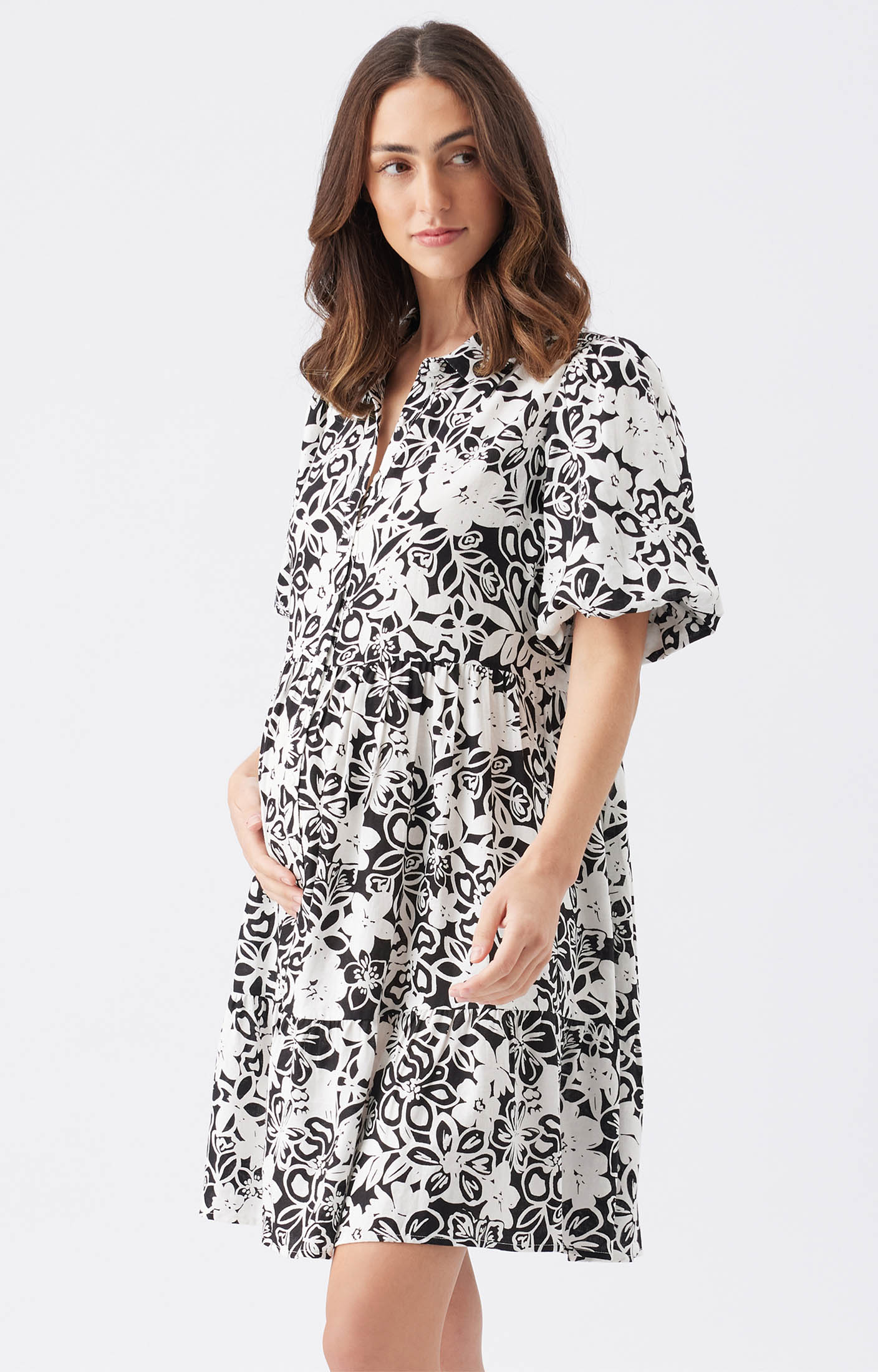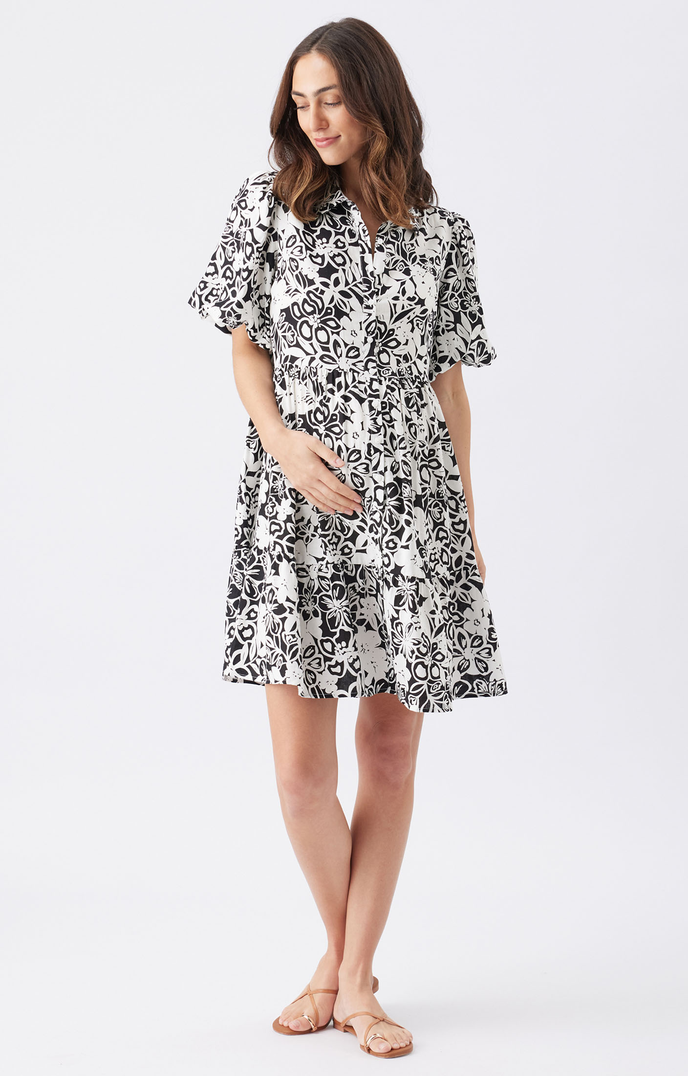 Meet the Nahla Linen Dress — crafted from a breezy linen-viscose blend. It features a relaxed, flattering fit with a cute collar and stylish puff sleeves that hit just above the elbow. The printed woven fabric adds a touch of sophistication, while the button-up front makes nursing easy and convenient. Perfect for special occasions or laid-back weekends, pair it with your favourite flats for an effortless, chic look.