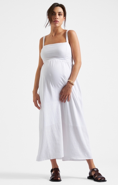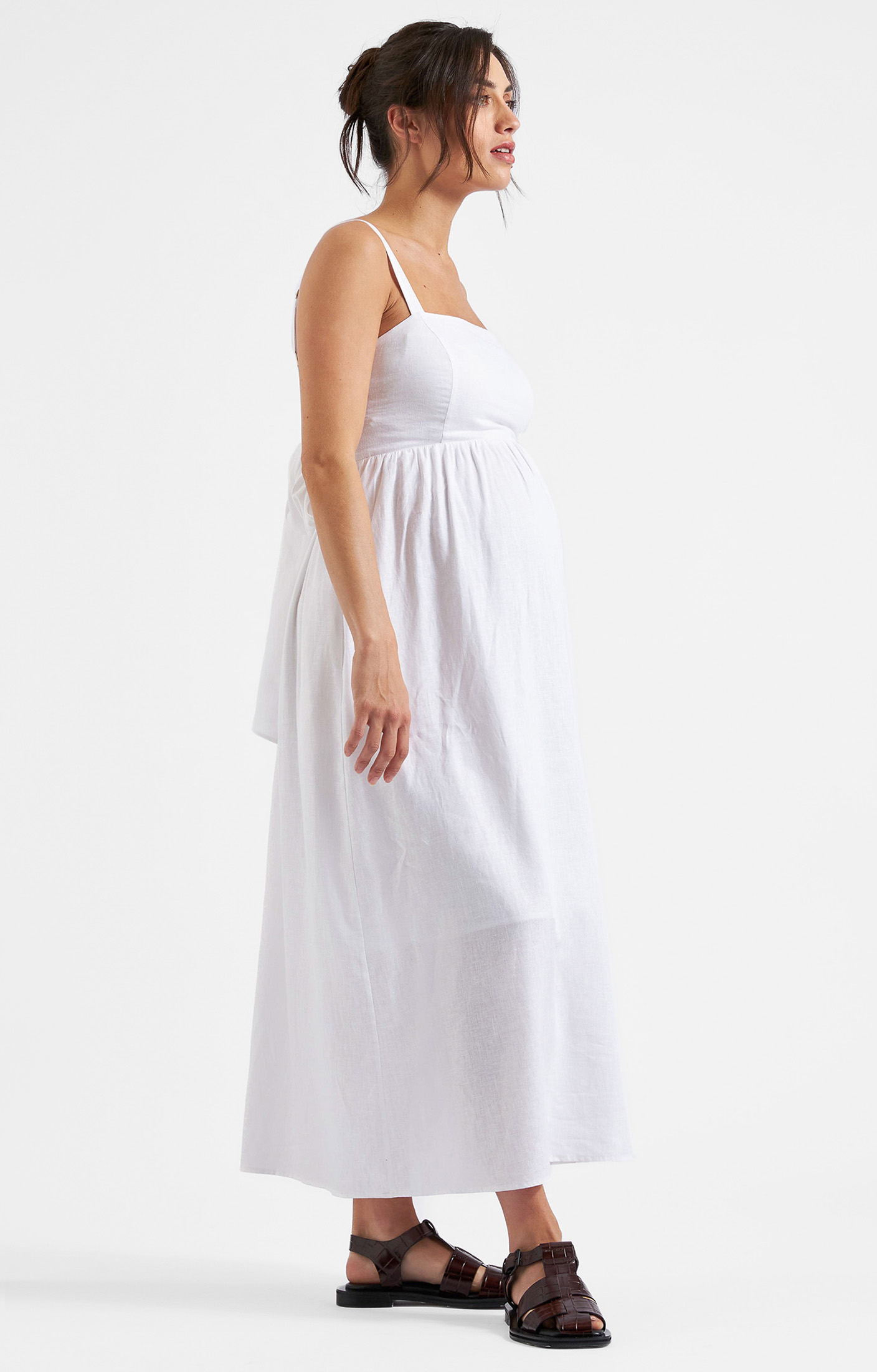 Introducing the Simone Tie Back Linen Dress, which combines style, comfort, and practicality in one stunning piece. This dress has a fitted bust that flows into an elegant gathered skirt. Enjoy the added convenience of an elastic panel with ties across the back, creating a silhouette that flatters all shapes, and side seam pockets for your everyday essentials. Pair it with your favourite sandals for an effortlessly elegant look.