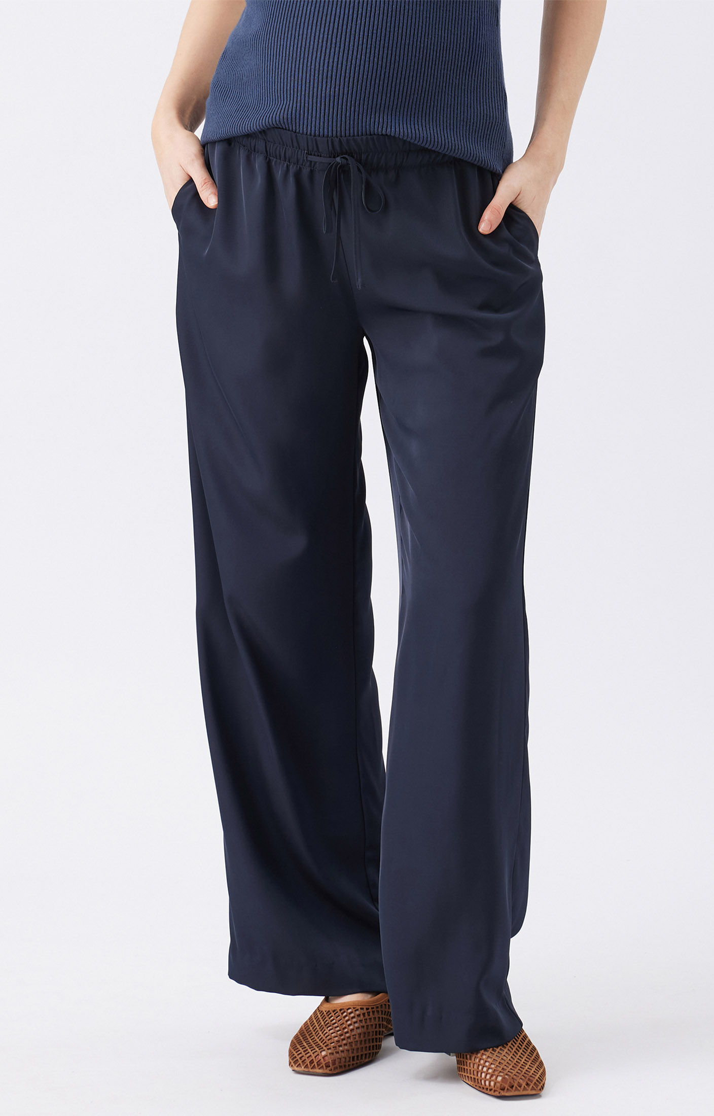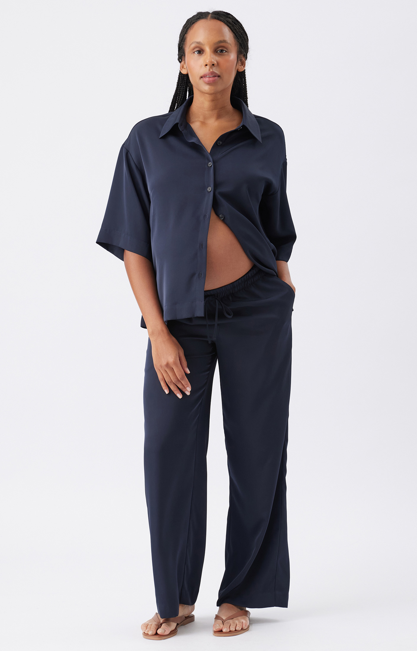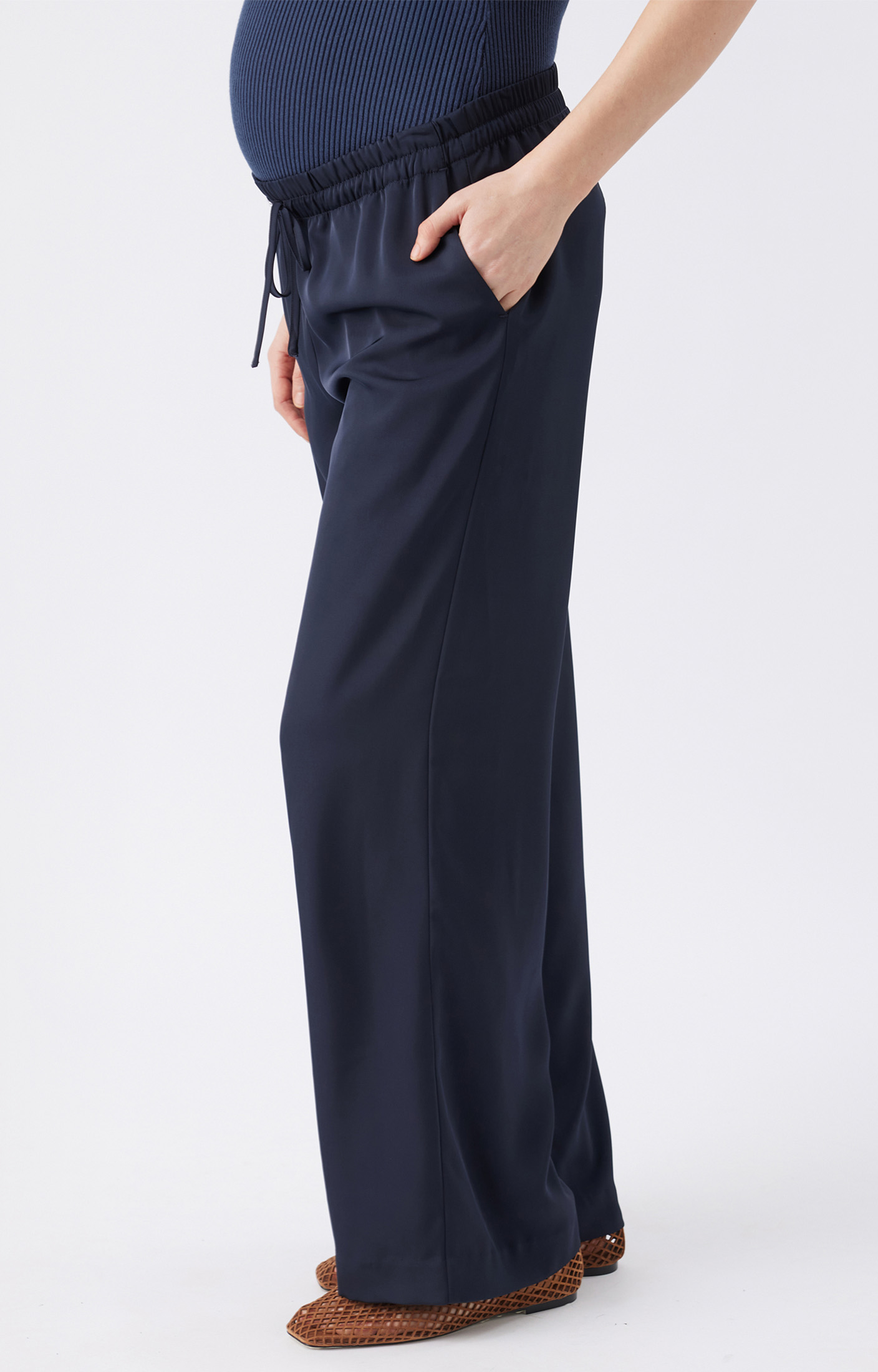Slip into the Tamara Satin Pull-On Pant — your new go-to for comfort and style. Made from smooth, matte satin polyester, these wide-leg pants have a relaxed fit that moves with you. The elastic waist with drawstring lets you get the perfect fit through every stage of pregnancy and beyond. Whether you’re heading to the office or chilling on the weekend, these pants are easy to dress up or down. Comfortable, versatile, and effortlessly chic — the Tamara Pant is a must-have wardrobe staple.