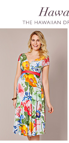 This sunny, bold design is the perfect fashion piece that will get you noticed. Printed on our sumptuous viscose jersey, our Hawaiian maternity dresses are fully lined and come with a detachable silky, jersey or satin sash.
