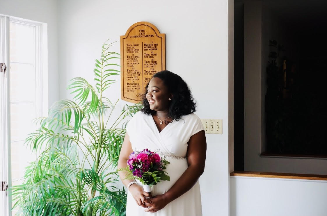 Our mini-mony was held on May 22nd, 2021. It was a hot and humid 90 degrees outside that day. Typically to buy a wedding dress, many wedding stores will ask for at least 6 months to order and receive your gown and that is without the alterations. I had begun dress shopping in March of 2021, which was only 3 months away. I was also 5-months pregnant on my Big Day, so I wanted a dress that would be considerate of my growing belly and pregnancy hot flashes. I had been going to local wedding stores in hopes of finding off-the rack wedding dresses and did not have any luck, so I began looking online. My older sister Chanel sent me a link to the Francesca Maxi Dress from Tiffany Rose and I thought it was too good to be true. When I ordered the dress I thought it may need to be hemmed but once I tried the dress on it fit perfectly with a small heel. The fabric was soft, flowy and breathable.