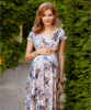 Short sleeved with a crossover neckline to the front and back bodice and a full skirt that sways from a gentle gathering over the bump, this dress is designed to keep you cool and comfortable.