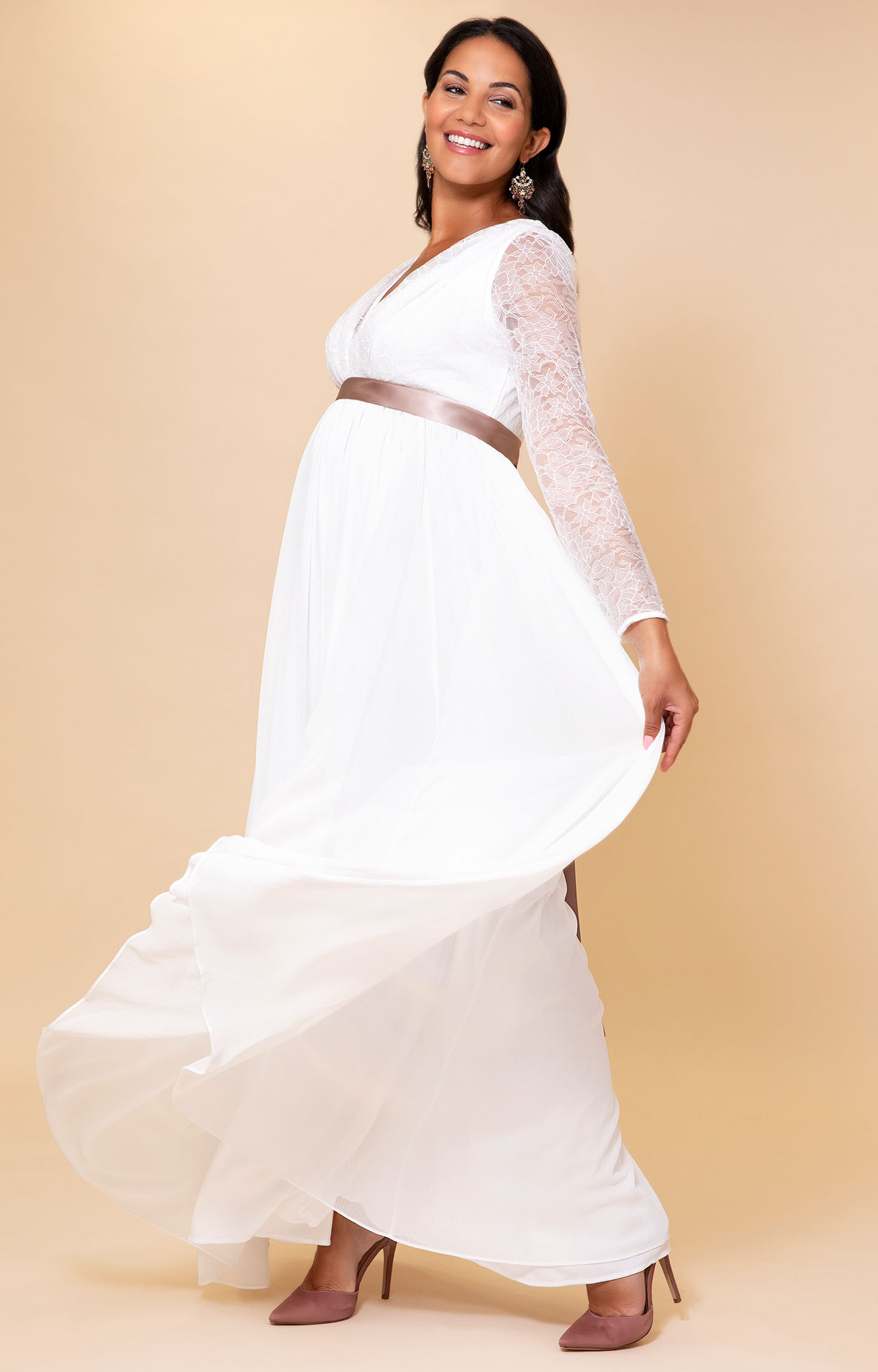 Classic with a hint of modern, our Leah maternity wedding dress is striking as well as romantic.