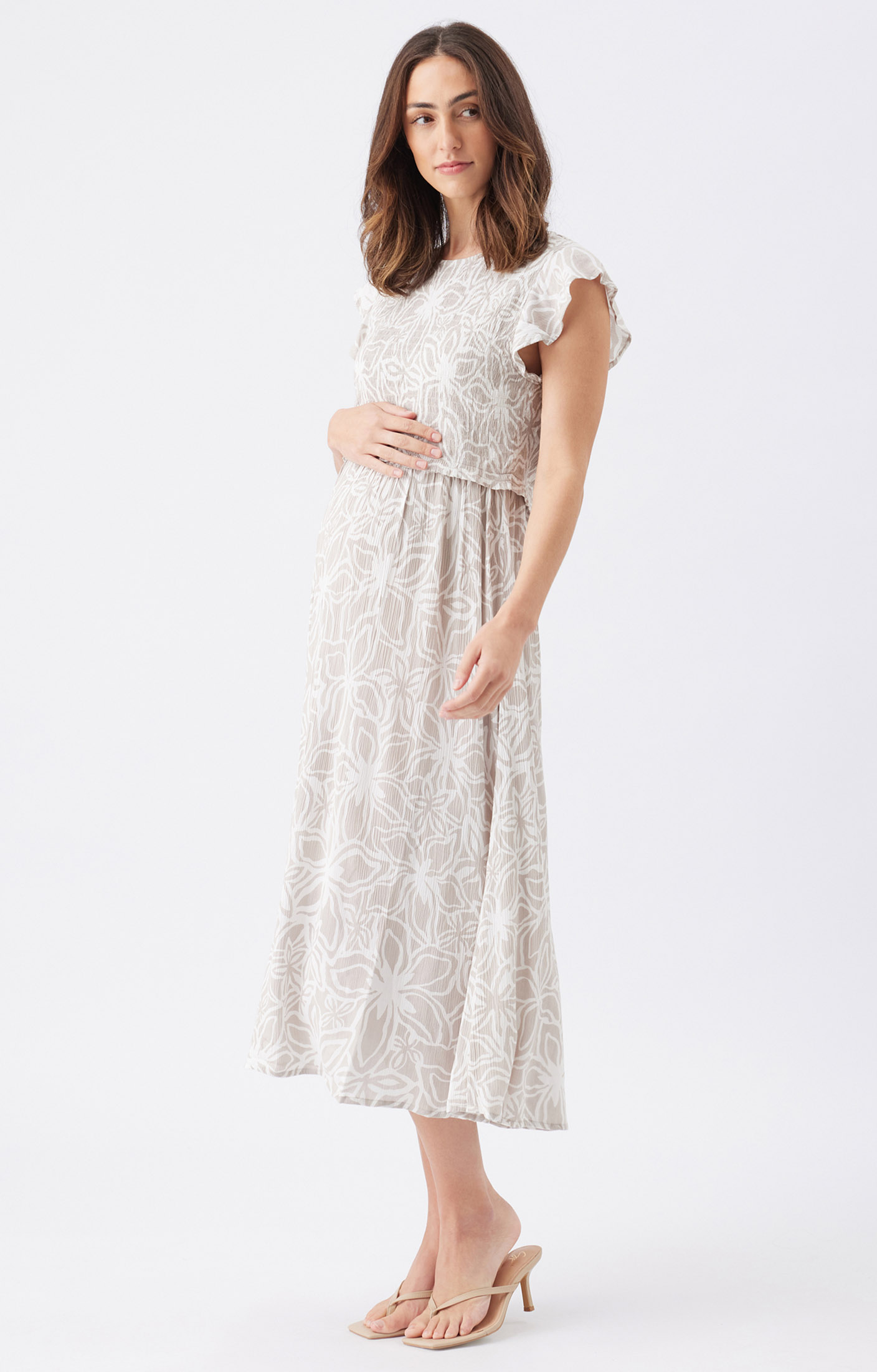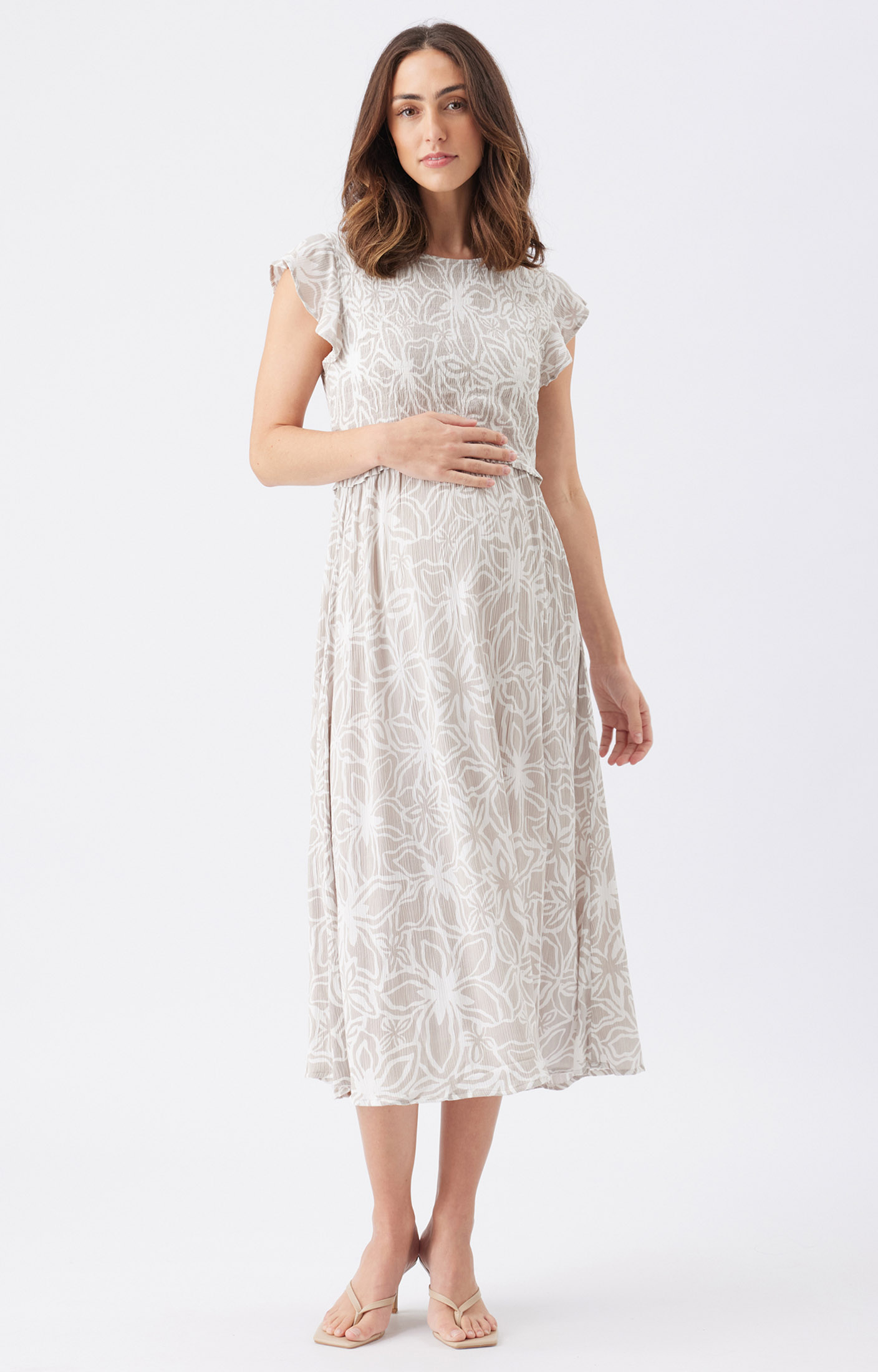 Say hello to sunny days in the Alona Nursing Dress. With its comfy shirred bodice, floaty gathered skirt, and breezy crinkled viscose fabric, this dress is made for warm-weather fun. The sweet frill detail at the shoulders adds just the right amount of charm, while the round neckline and lift-up layer make nursing a breeze. Whether you're off to a picnic, a garden party, or just grabbing coffee, throw on some sandals and you’re good to go.