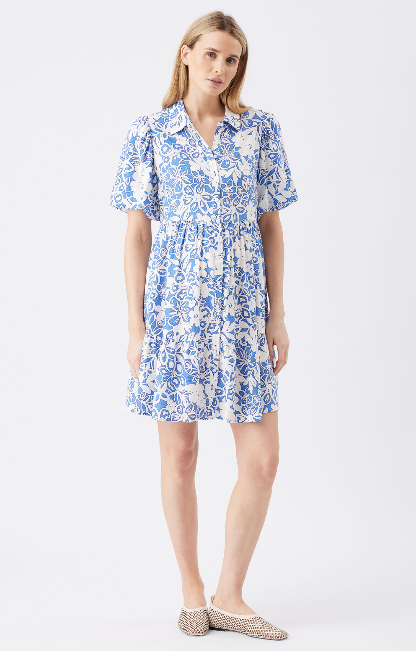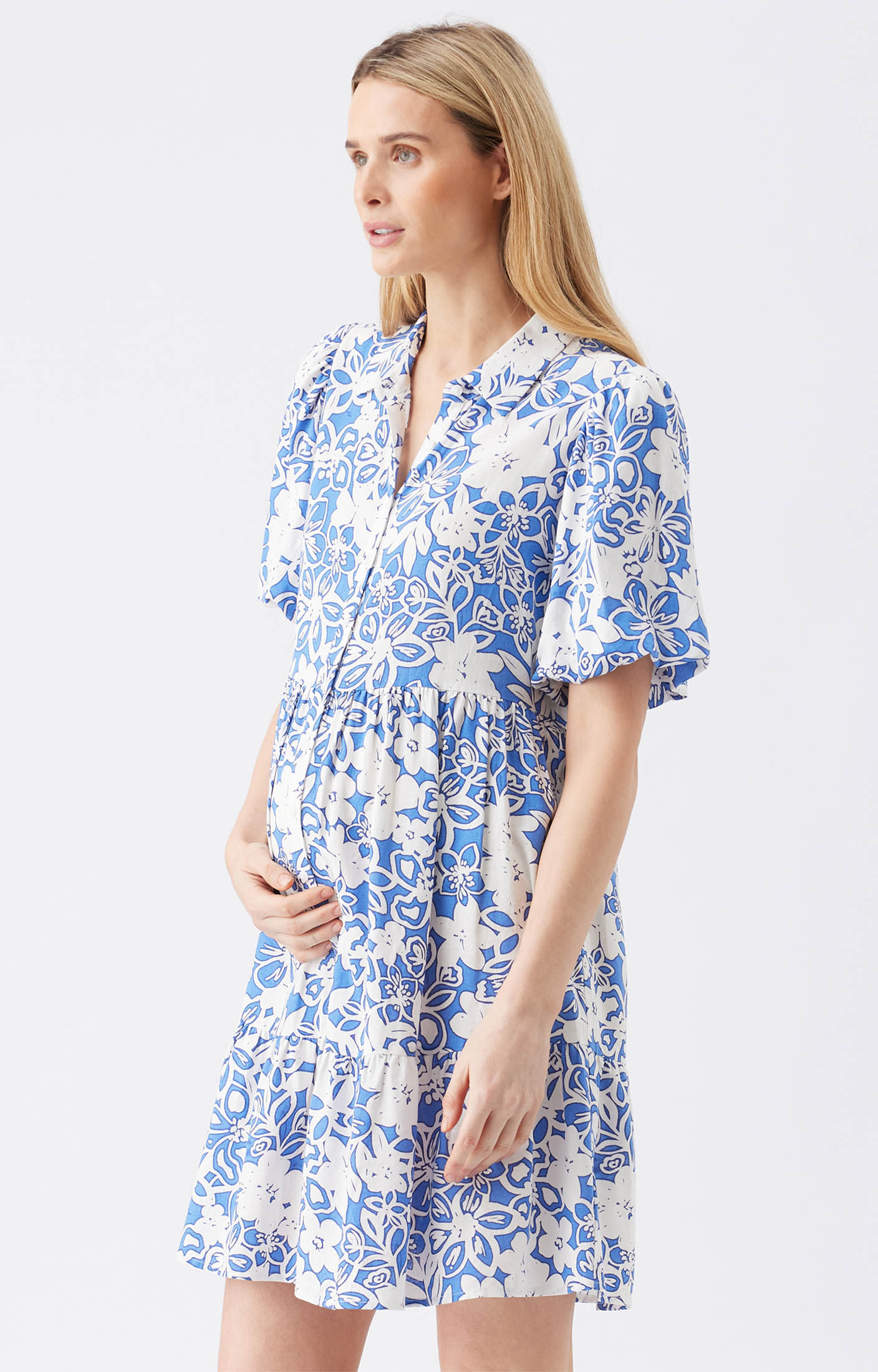 Meet the Nahla Linen Dress — crafted from a breezy linen-viscose blend. It features a relaxed, flattering fit with a cute collar and stylish puff sleeves that hit just above the elbow. The printed woven fabric adds a touch of sophistication, while the button-up front makes nursing easy and convenient. Perfect for special occasions or laid-back weekends, pair it with your favourite flats for an effortless, chic look.