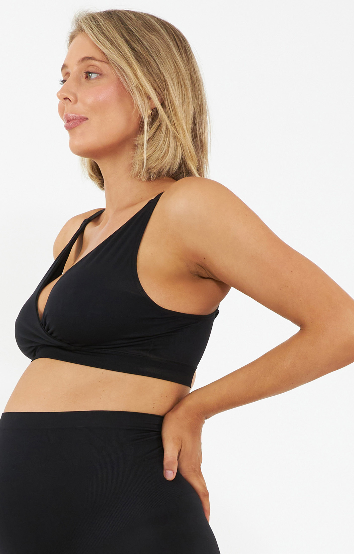 The must-have bralette you need in your underwear draw is here. Made from a super soft seamless knit, this wirefree bralette is designed with maximum stretch in mind for your ultimate comfort. Offering gentle elasticated support and simple crossover nursing access (with the option to insert breast-pads), these bras are free of clips and hooks – making for a more comfortable night’s sleep.