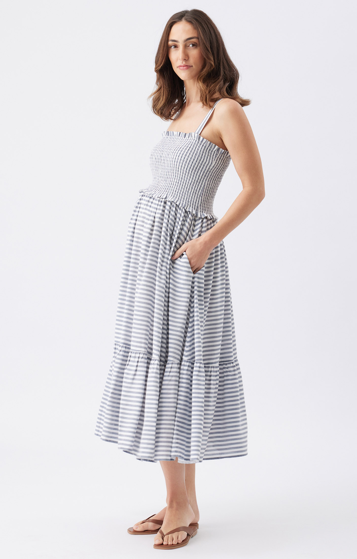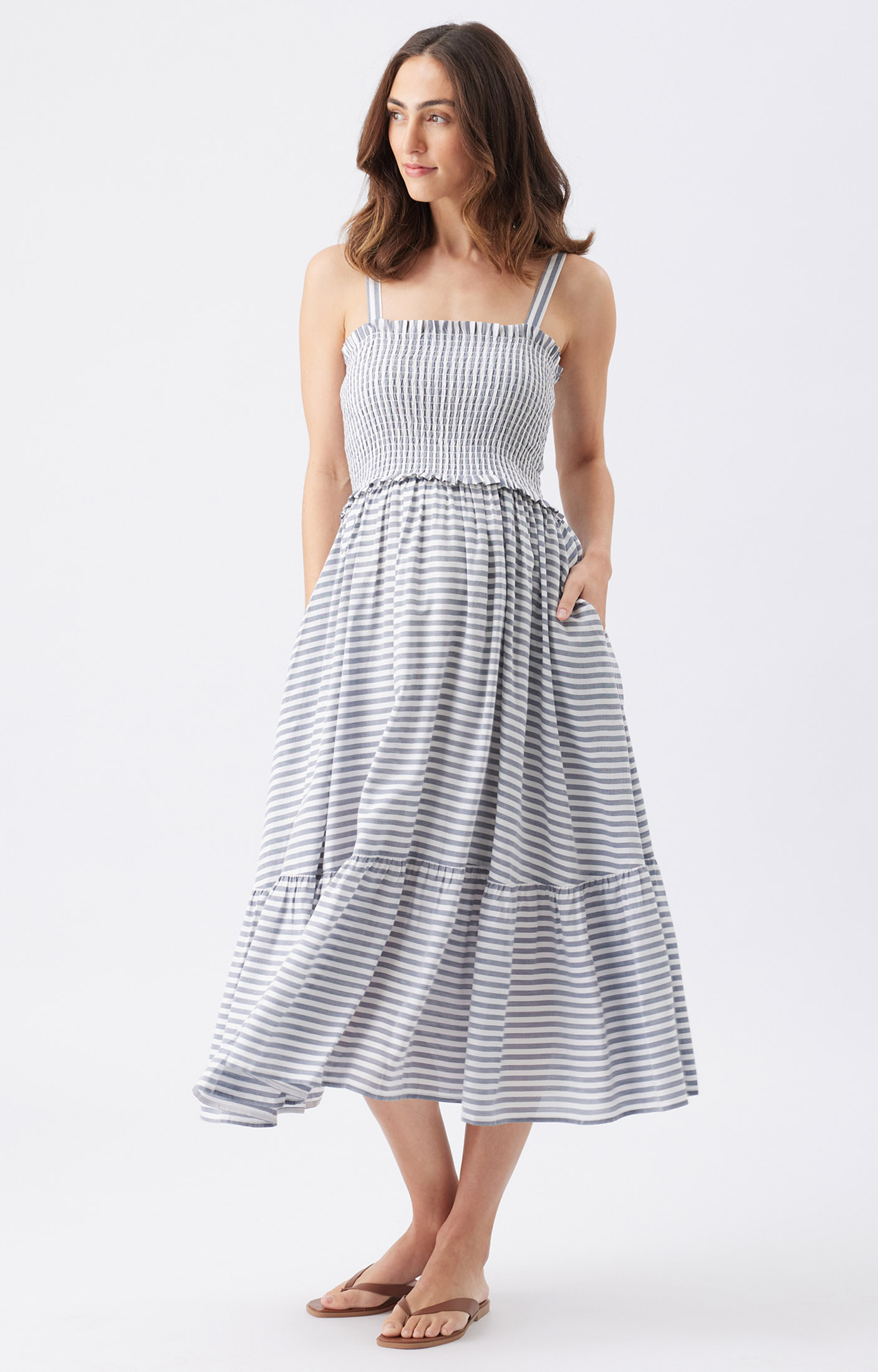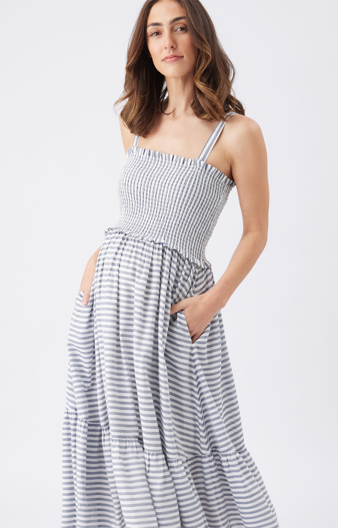 The Sofia Stripe Dress is an easy, stylish pick for your warm-weather wardrobe. Crafted from 100% yarn-dyed viscose, it’s light, breezy, and full of vibrant stripes. The shirred bodice hugs in all the right places, while the gathered skirt adds a relaxed, feminine vibe. With adjustable straps, handy side pockets, and a lined skirt, it’s as practical as it is stylish. Whether you’re out for brunch or just enjoying a sunny day, this dress keeps things effortlessly cool and comfortable.